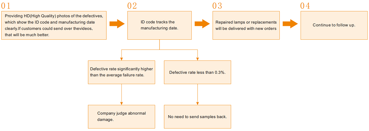 All products produced by Wonka stand by Wonka’s 3 years warranty(fixtures without luminare inside with 15 years warranty) if failed by quality problems during the specified warranty period.All defected products will be repaired or replaced free of charge if functional damage occurs normally.